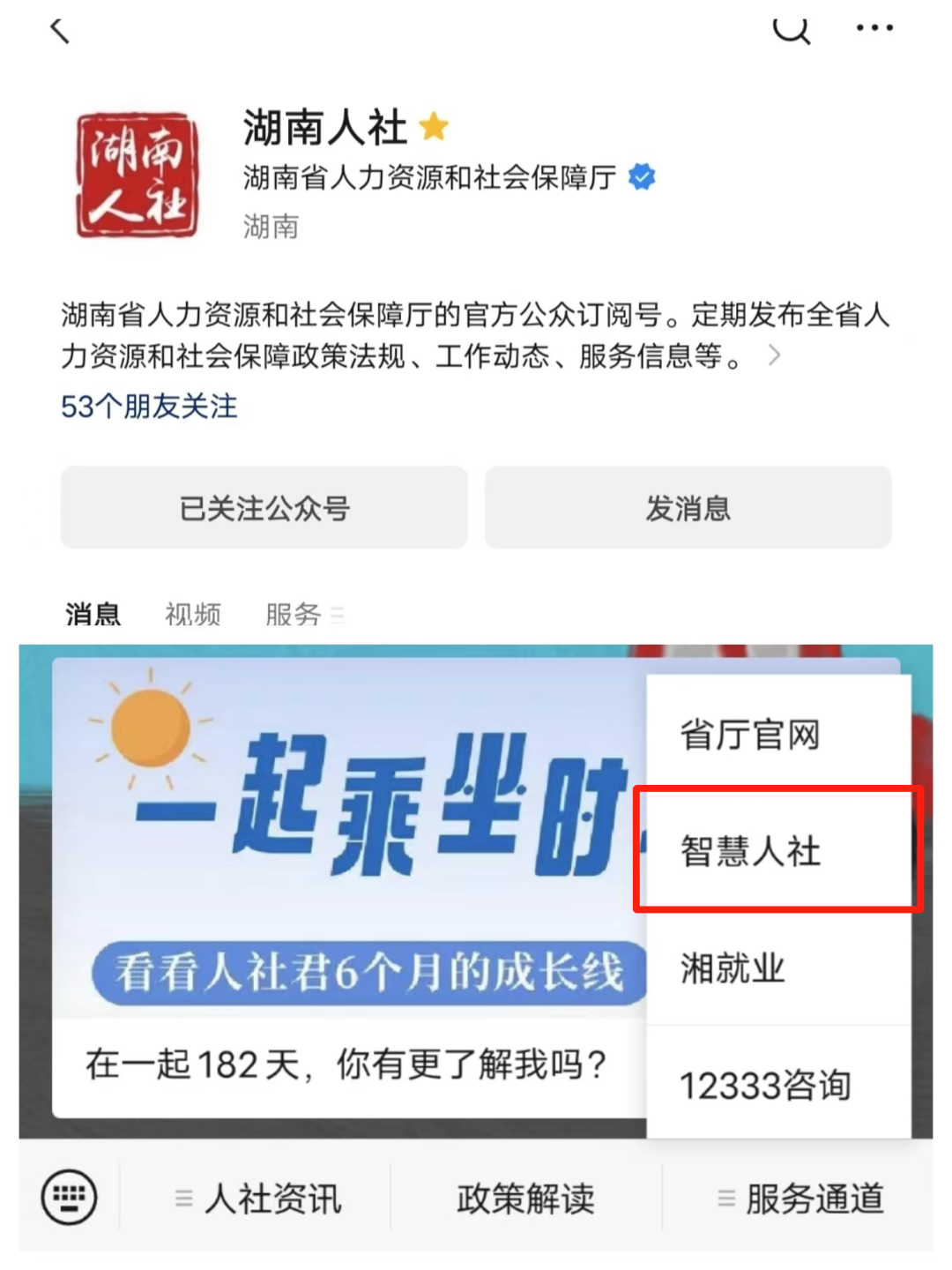 2、關(guān)注“湖南人社”“智慧人社”微信公眾號,點擊【服務通道】→【智慧人社】→【更多】→【社會保險-失業(yè)保險金申領(lǐng)】→【失業(yè)保險金申領(lǐng)】辦理;